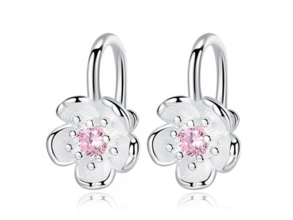 Krásné stříbrné náušnice s růžovým zirkonem. Stříbro 925.