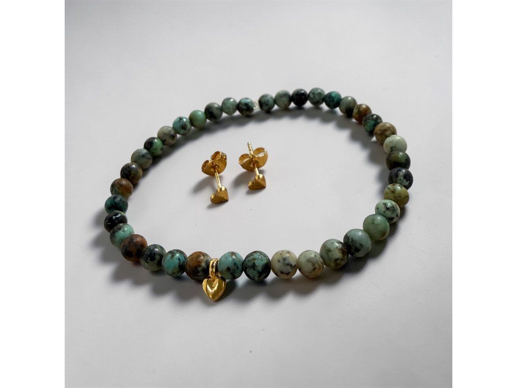 27. Set zelený korálkový náramek na gumičce s náušnicemi - Macreen by Marcela