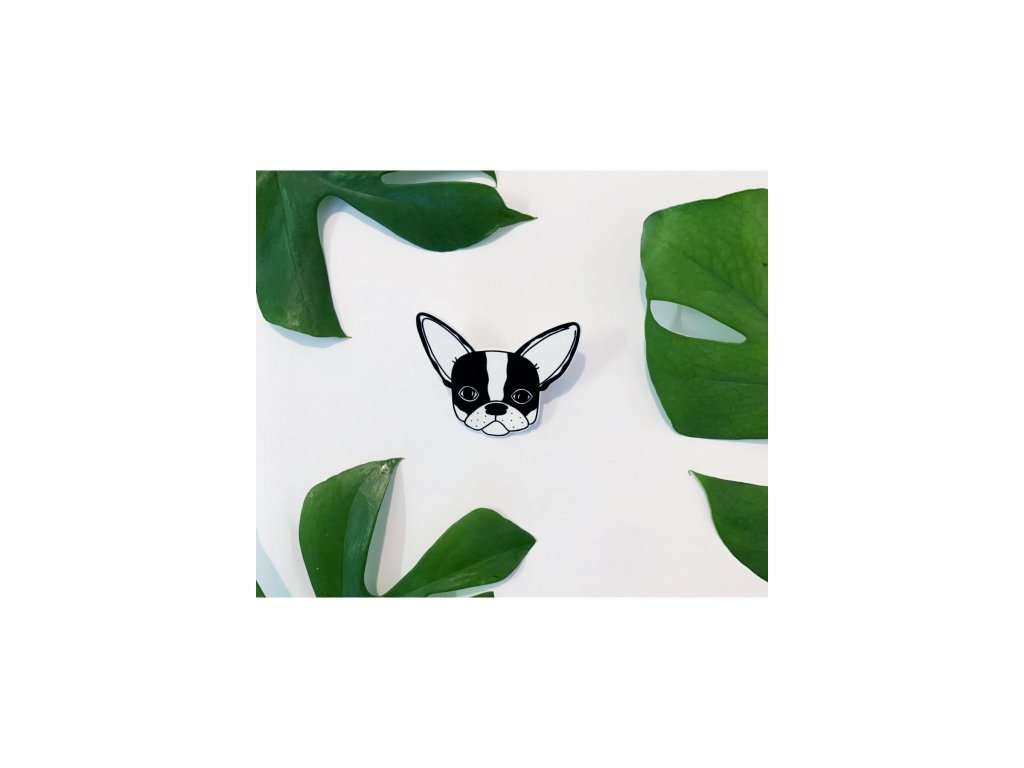 - Ručně kreslená brož s motivem buldočka