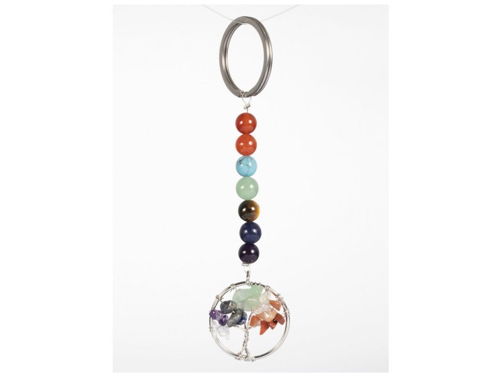 Klíčenka z chirurgické oceli s korálky barveného achátu a stromem života