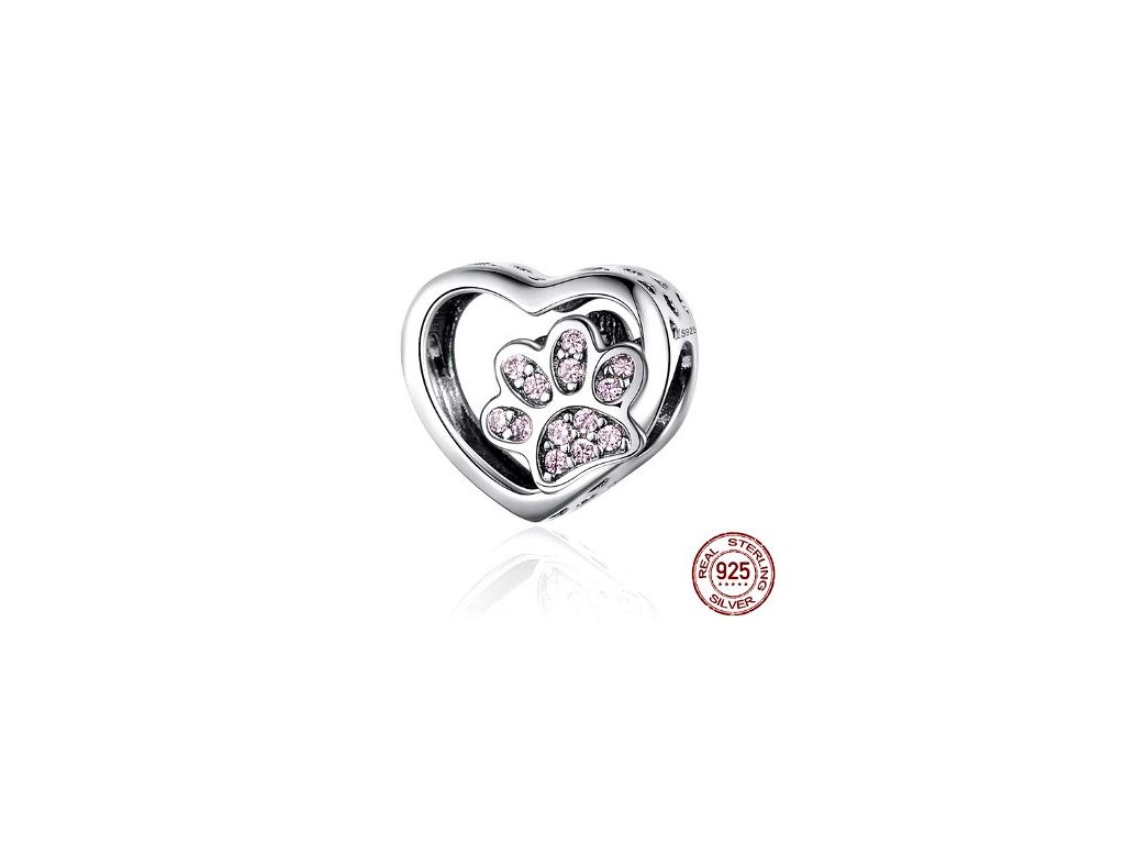 Přívěsek v podobě korálku na náramek či řetízek Pandora. Korálek je ve tvaru srdíčka se dvěmi holčičkami s balonkem v podobě srdíčka z růžového zirkonku. Stříbro 925/1000.