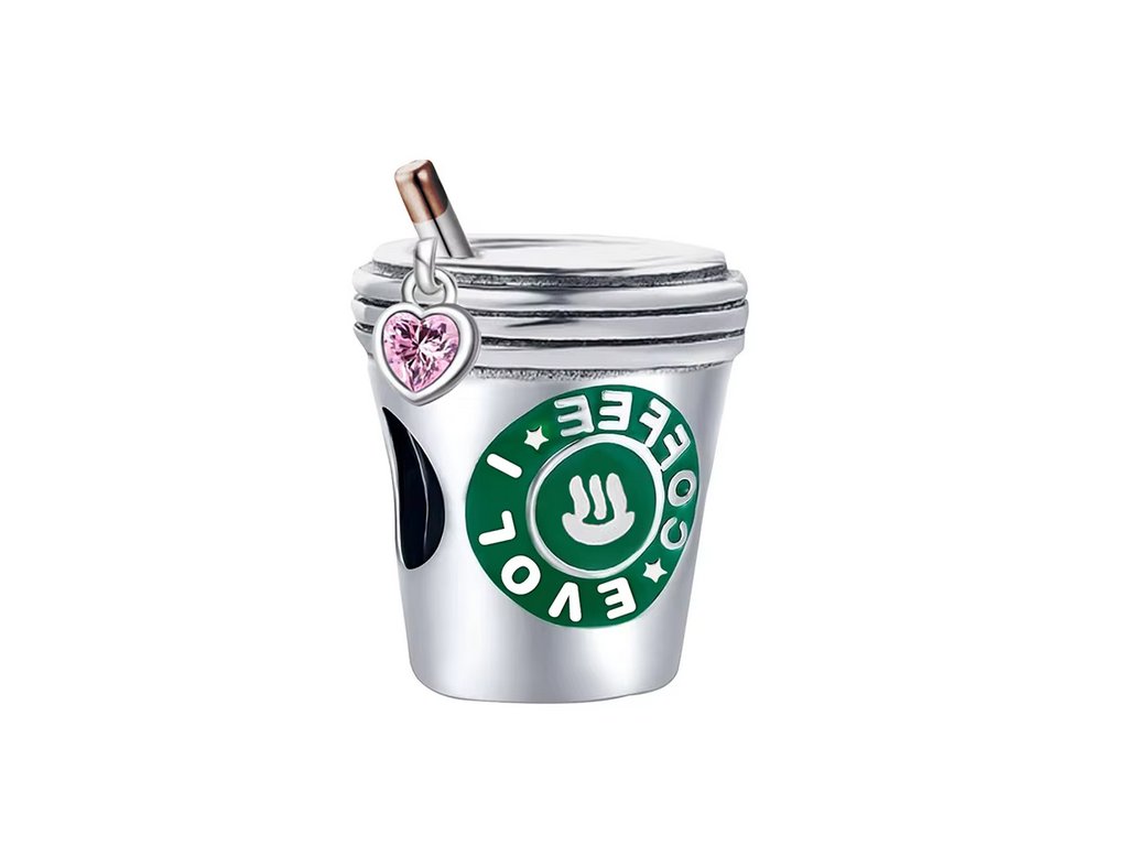 Korálek stříbrný na náramek kelímek káva