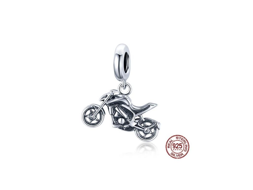 Korálek stříbrný na náramek Motorka visací