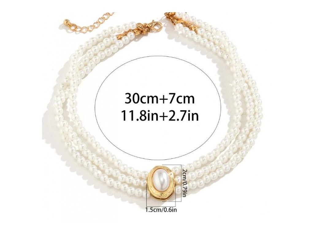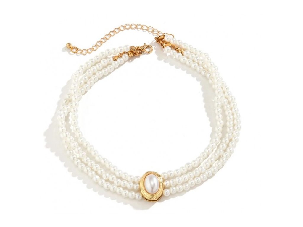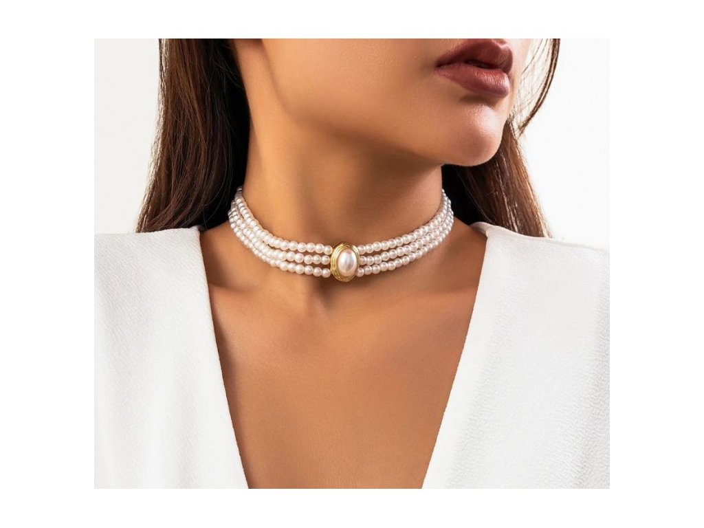Náhrdelník v černé barvě ve stylu chokeru se syntetickou bílou perlou.