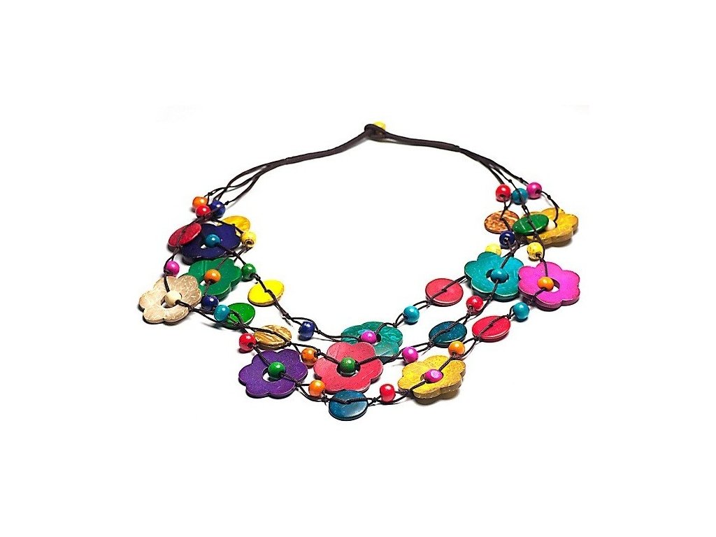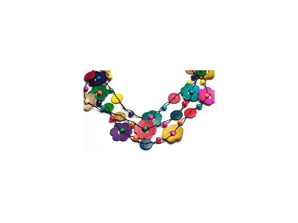Náhrdelník dřevěný barevný květiny