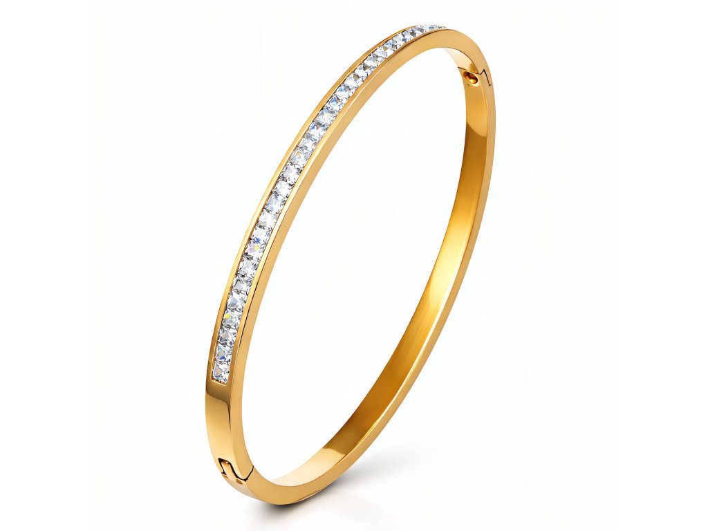 Náramek zlatý ocelový se zirkonky
