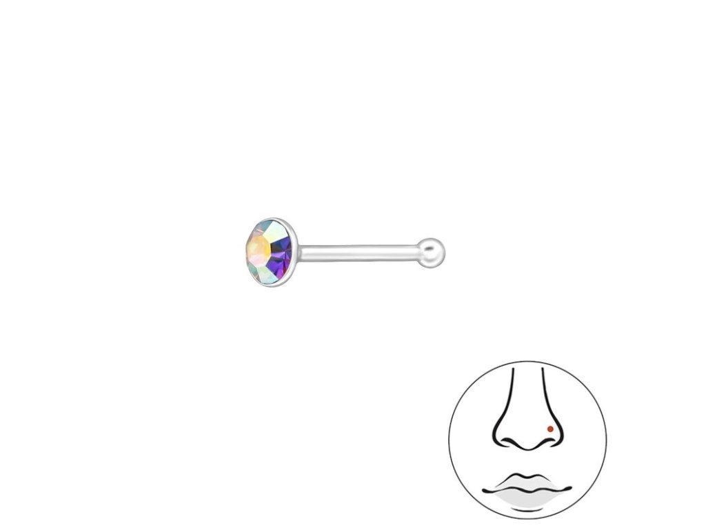 Tenká náušnice do nosu s čirým zirkonem. Vyrobena z chirurgické oceli.