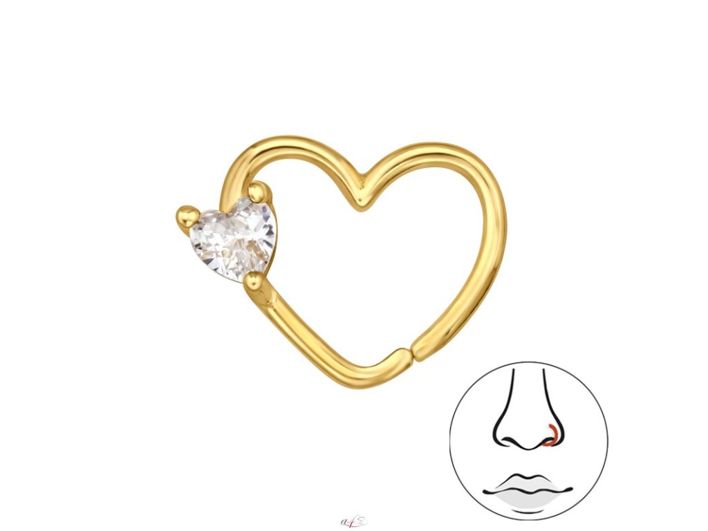 Tenký kroužek do nosu ze stříbra 925 se srdíčkem. Rozměr: 3,7mm x 2,8mm.