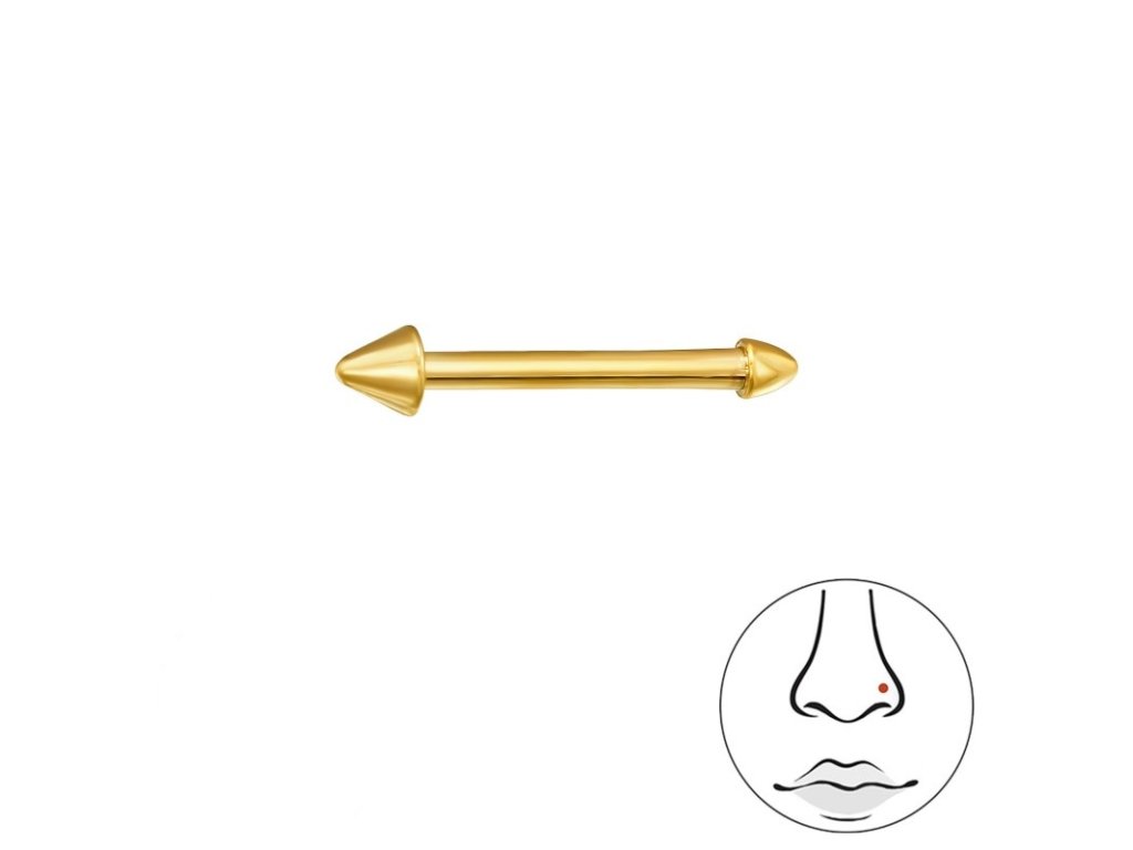 Piercing do nosu ve zlaté barvě vyroben z Titanu. Pokoveno plátovaným zlatem. Délka: 0,6cm.