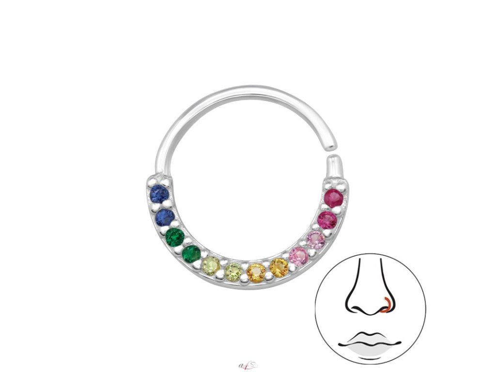 Zářivá duha barev: Kroužek je osázen barevnými zirkony, které se třpytí a hrají všemi barvami duhy. Tento hravý detail dodá vašemu nosu jedinečný a veselý vzhled.