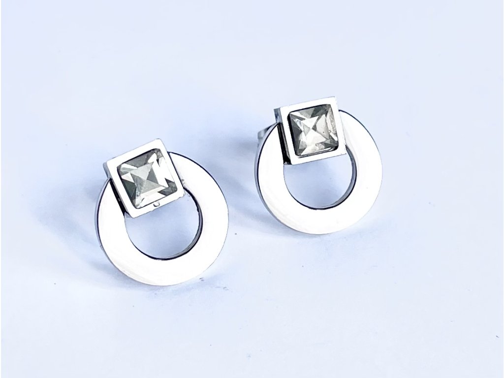 Náušnice z chirurgické oceli poseté třpytivými kamínky Swarovski v duhových barvách. Materiál: chirurgická ocel. Průměr: 1cm.