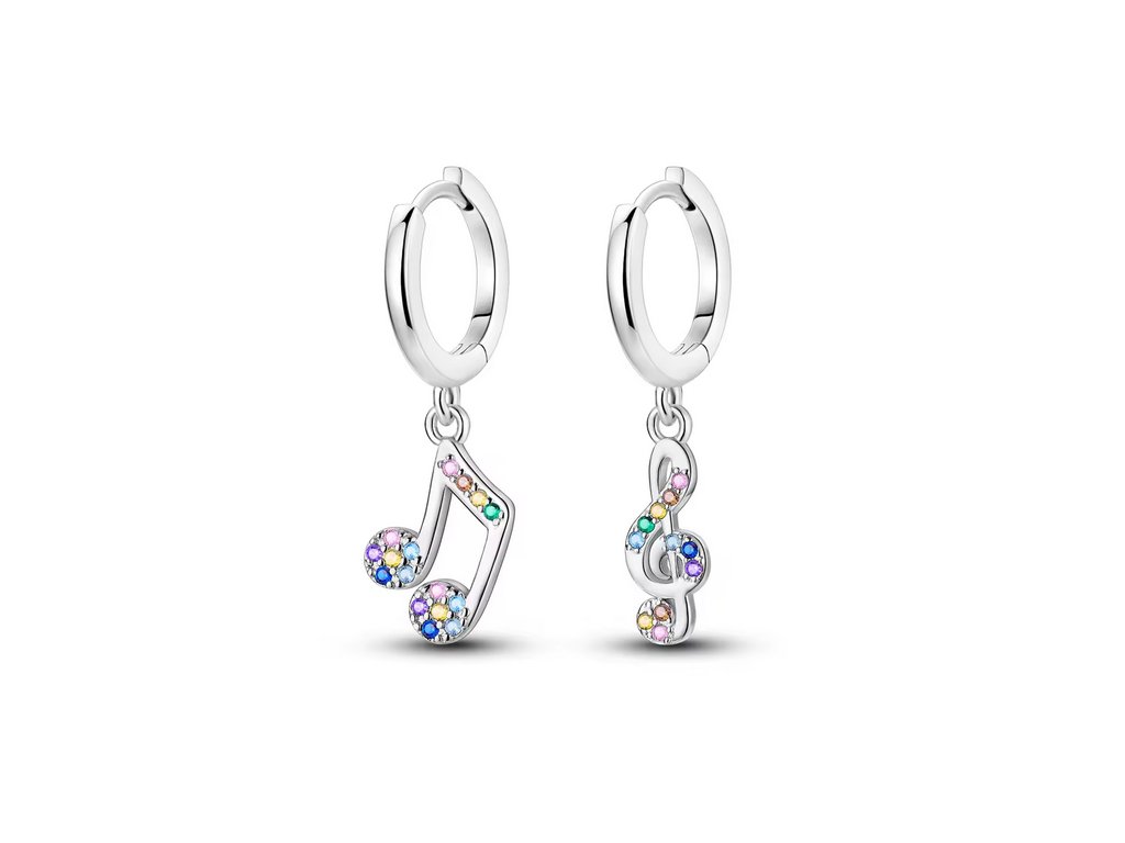 Ozdobné kameny: Tělo hudebních symbolů je bohatě osázeno barevnými kubickými zirkony. Barevné provedení dodává náušnicím živost a jedinečný vzhled.