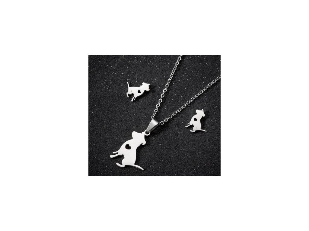 Krásná lesklá souprava ve stříbrné barvě z chirurgické oceli s tlapkami. Délka řetízku: 45cm. Průměr náušnic 1,3cm.