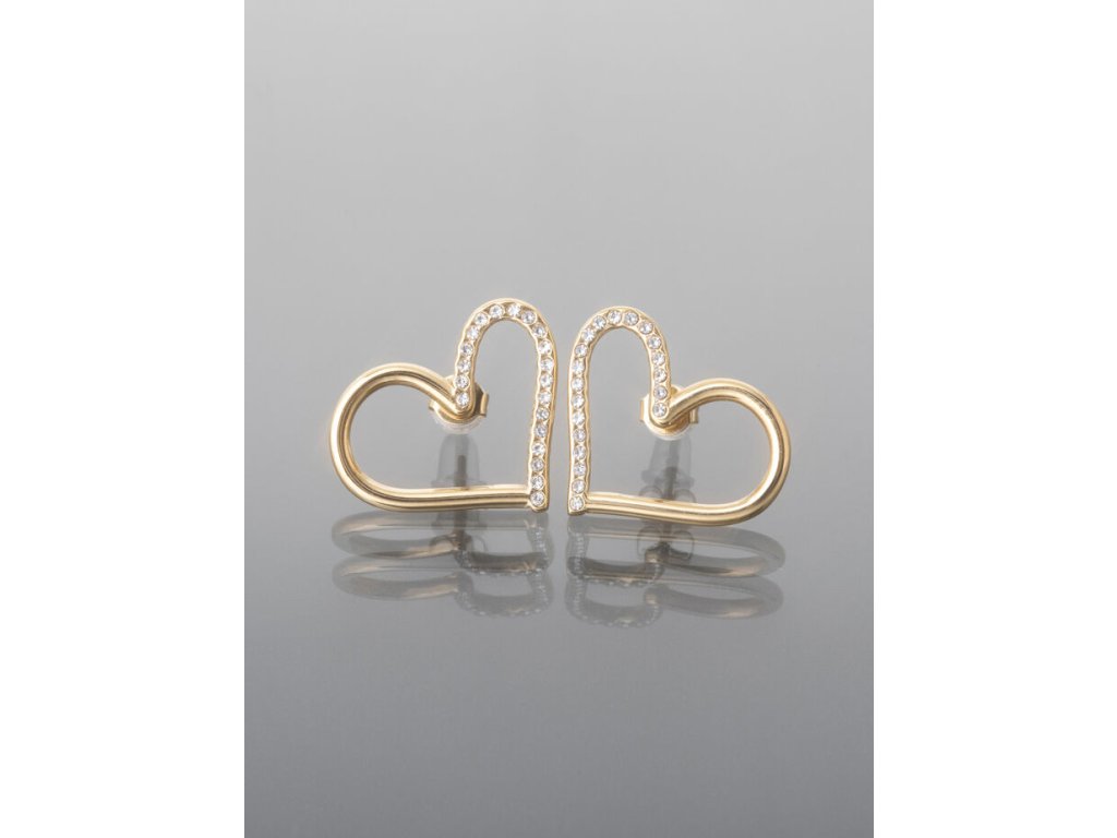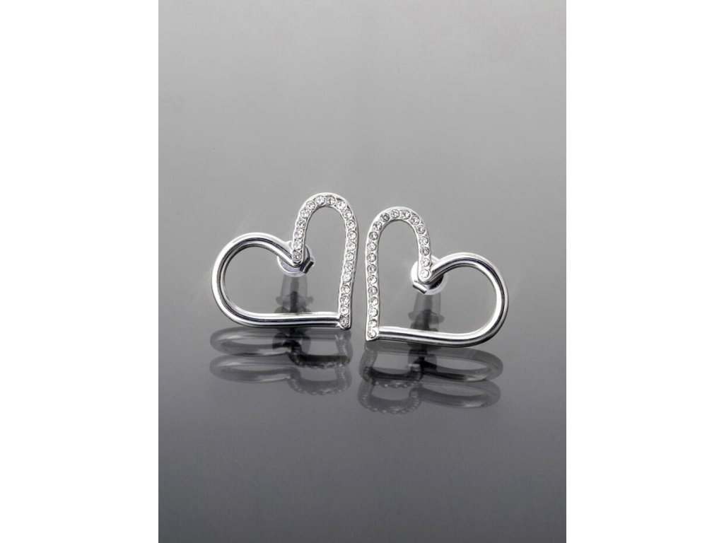 Zdobení: Horní polovina srdce je osázena řadou drobných, třpytivých čirých krystalů, které dodávají náušnicím jasný a elegantní lesk.