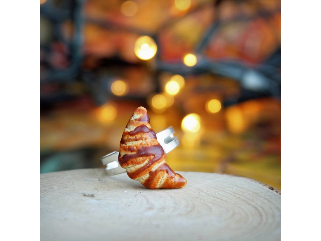 Prsten Fimo - Croissant s čokoládou