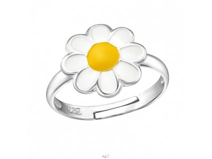 Prsten vyrobený ze stříbra osazený krásnou sedmikráskou a lístečkem se zirkony. Nastavitelná velikost. Materiál: stříbro 925.