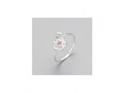 Romantický stříbrný prstýnek s kytičkou a růžovým krystalkem uprostřed. Materiál: stříbro Ag 925/1000. Nastavitelná velikost.