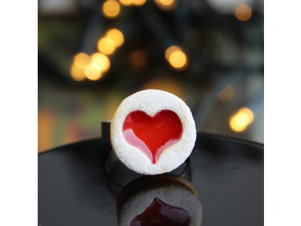 Dodejte svému looku hravý a originální prvek! Tento prstýnek s motivem oblíbeného lineckého cukroví je dokonalým doplňkem pro milovníky pečení a nekonvenčních šperků.