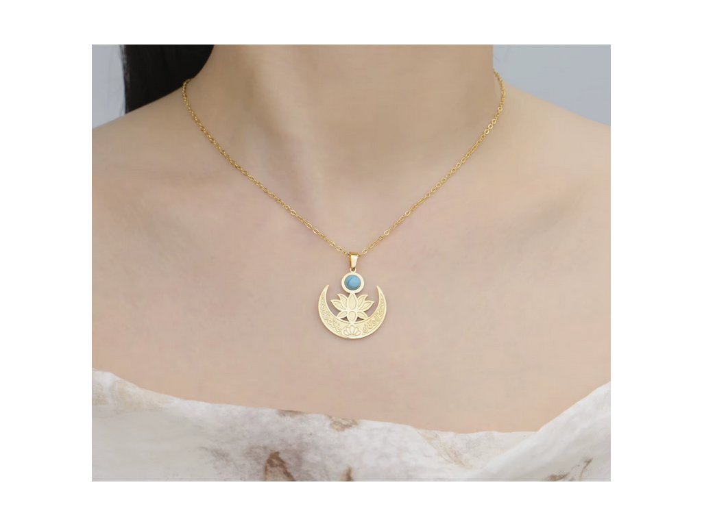 Přívěsek z chirurgické oceli na řetízku. Přívěsek je ve tvaru květu Lotosu. Délka přívěsku: 1,5cm.