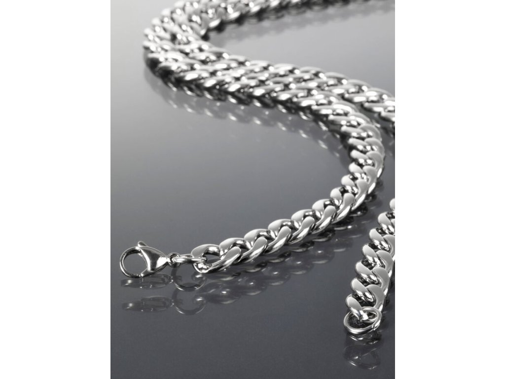 Masivní řetízek z leštěné chirurgické oceli ve stříbrné barvě, složený z oválných ok. Materiál: nerezová ocel. Délka řetízku: 50cm. Šířka: 1,1cm.