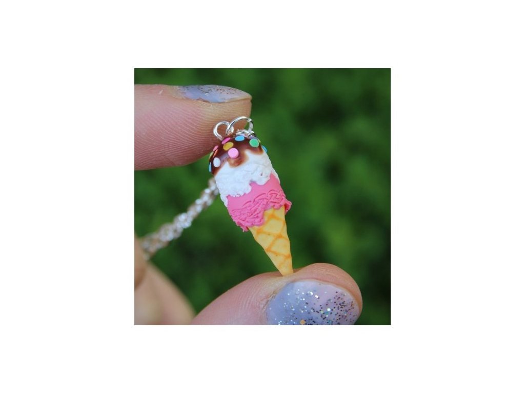 Řetízek s přívěskem Fimo - zmrzlina s polevou a sprinkles