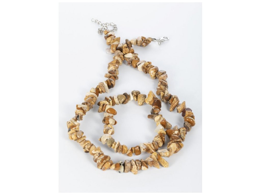 Sada sekaných náhrdelníku a náramku z leštěného obrázkového jaspisu béžová