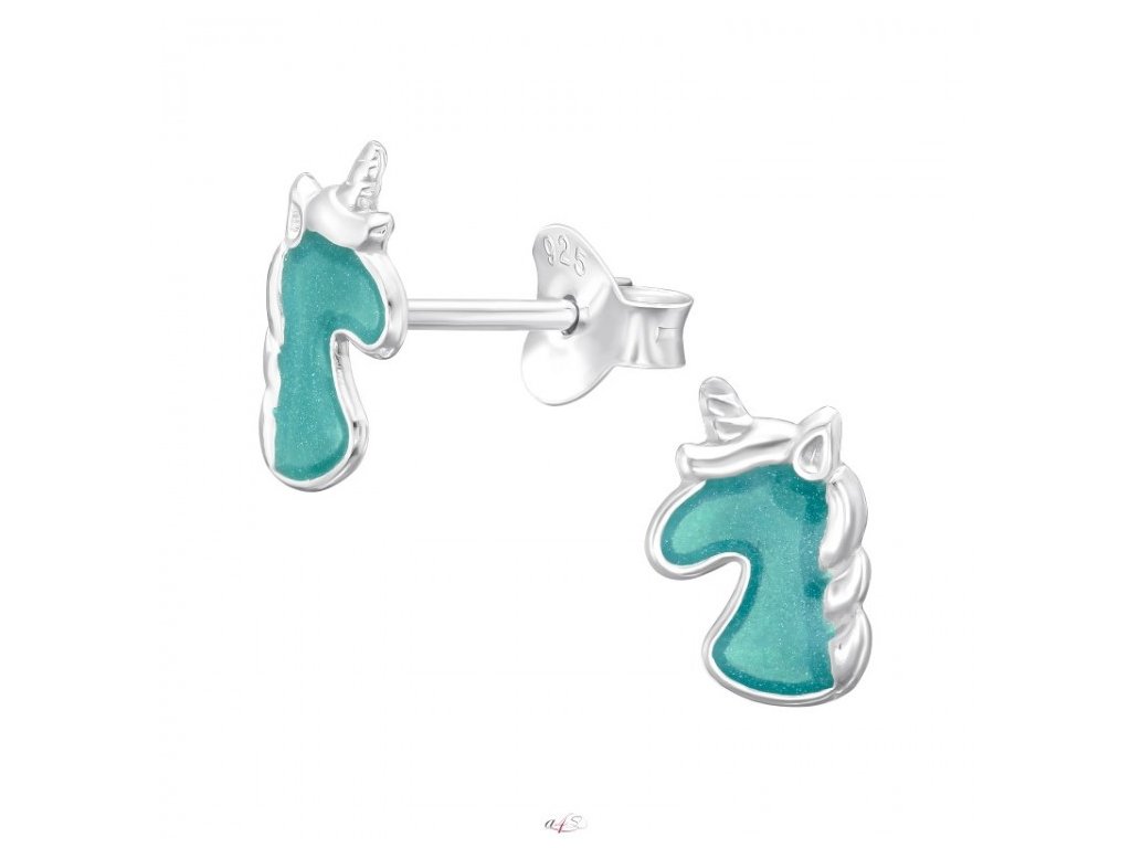 Dětské náušnice ze stříbra - jednorožec tyrkys