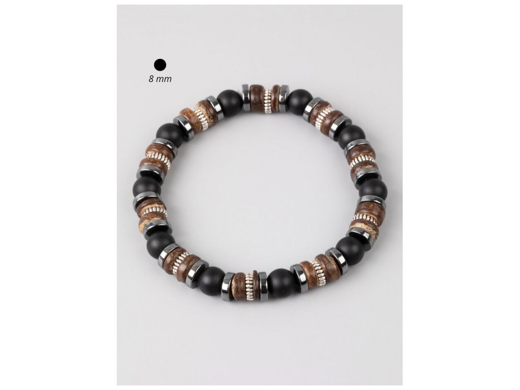 Exkluzivní výrazný náramek z korálků hematitu, dřeva a lávového kamene černá