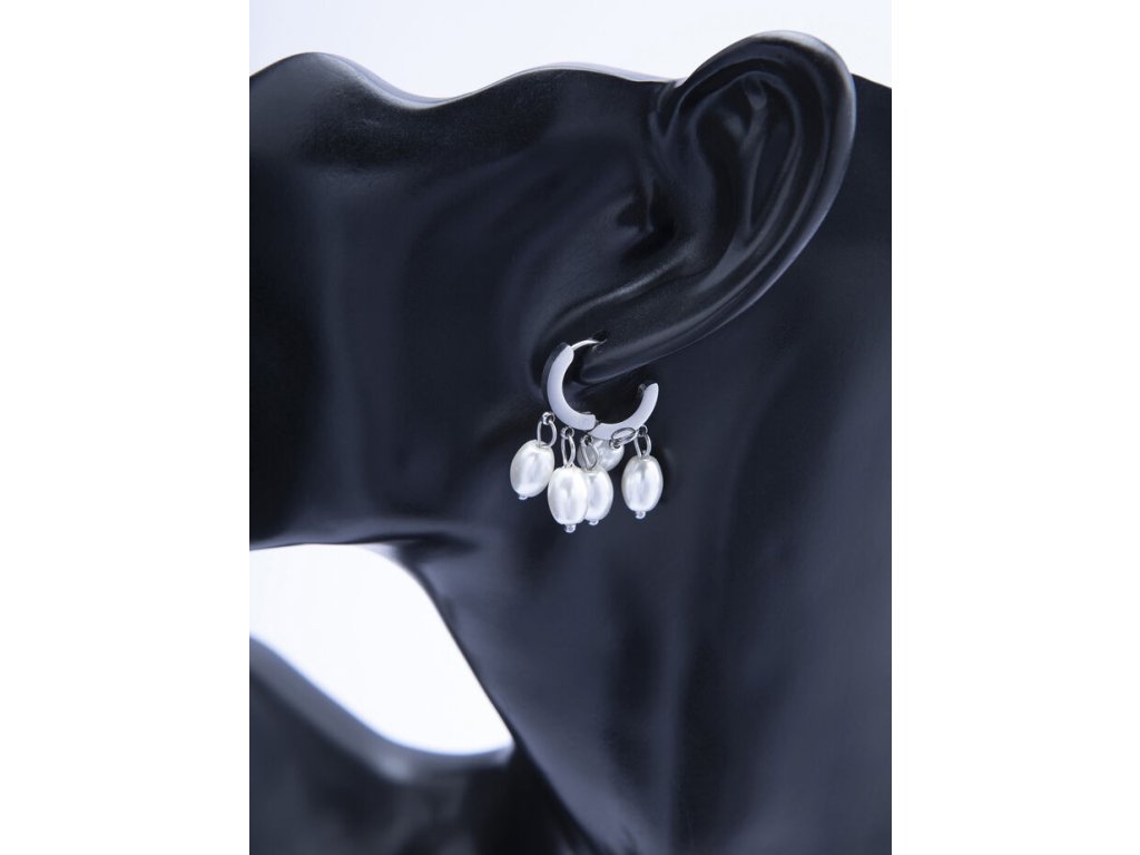 Kruhové náušnice z leštěné chirurgické oceli s perličkami stříbrná