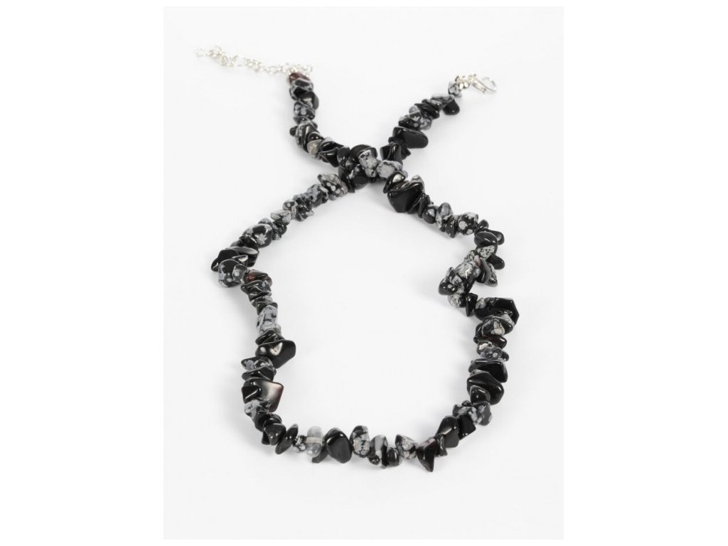 Náhrdelník sekaný z leštěného vločkového obsidiánu černá