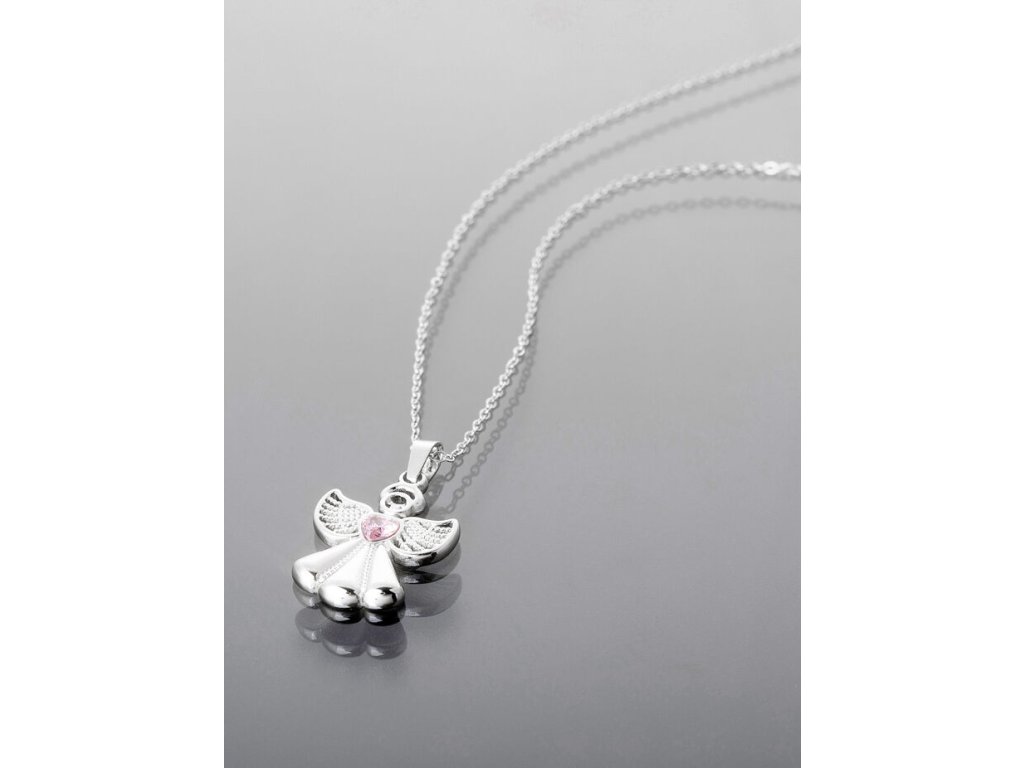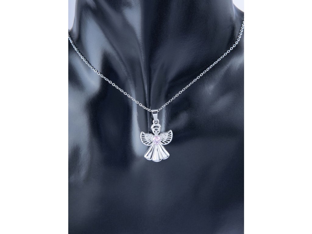 Náhrdelník z oceli anděl s růžovým zirkonem