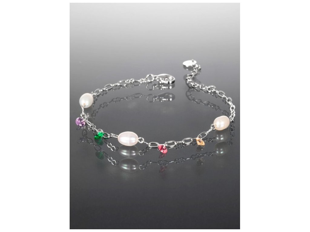 Náramek z chirurgické oceli s perlami a barevnými krystaly