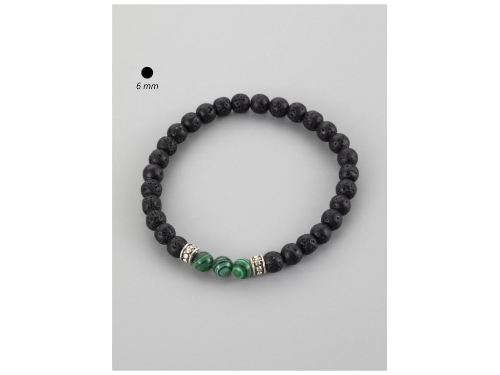 Náramek z minerálů - Lávový kámen a Malachit