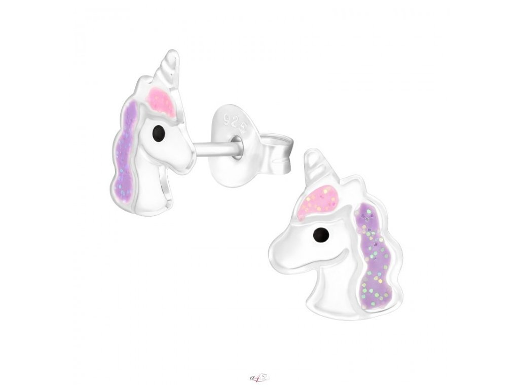 Náušnice dětské fialový jednorožci