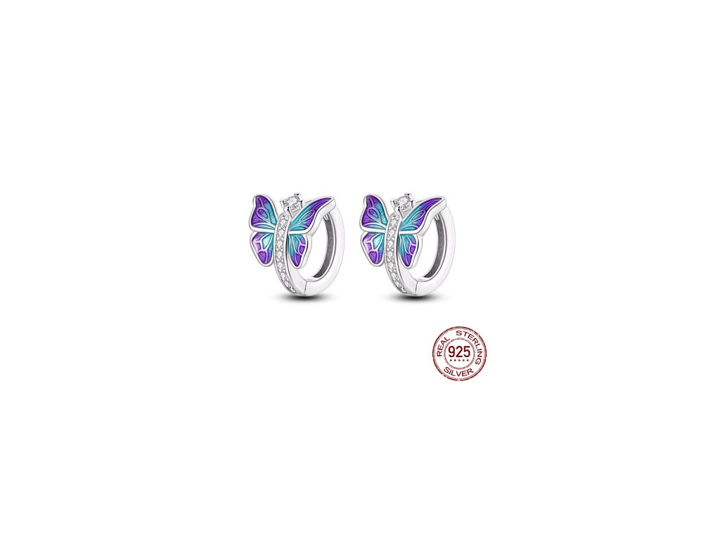 Náušnice stříbrné kroužky s motýlky
