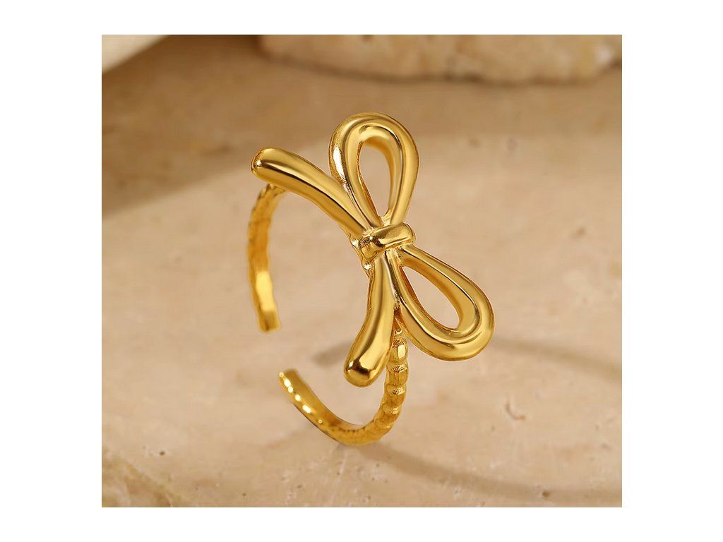 Prstýnek ocelový zlatá mašlička