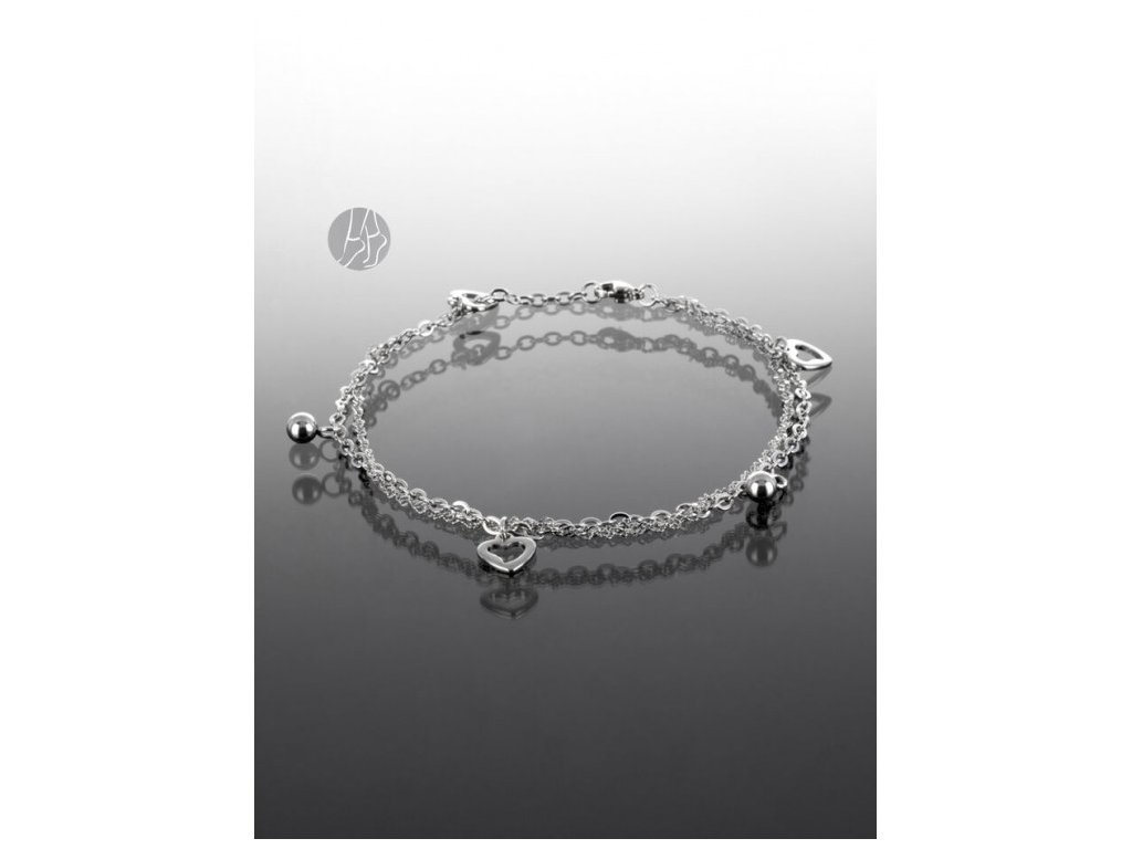 Řetízek na nohu s kuličkami a decentními srdíčky