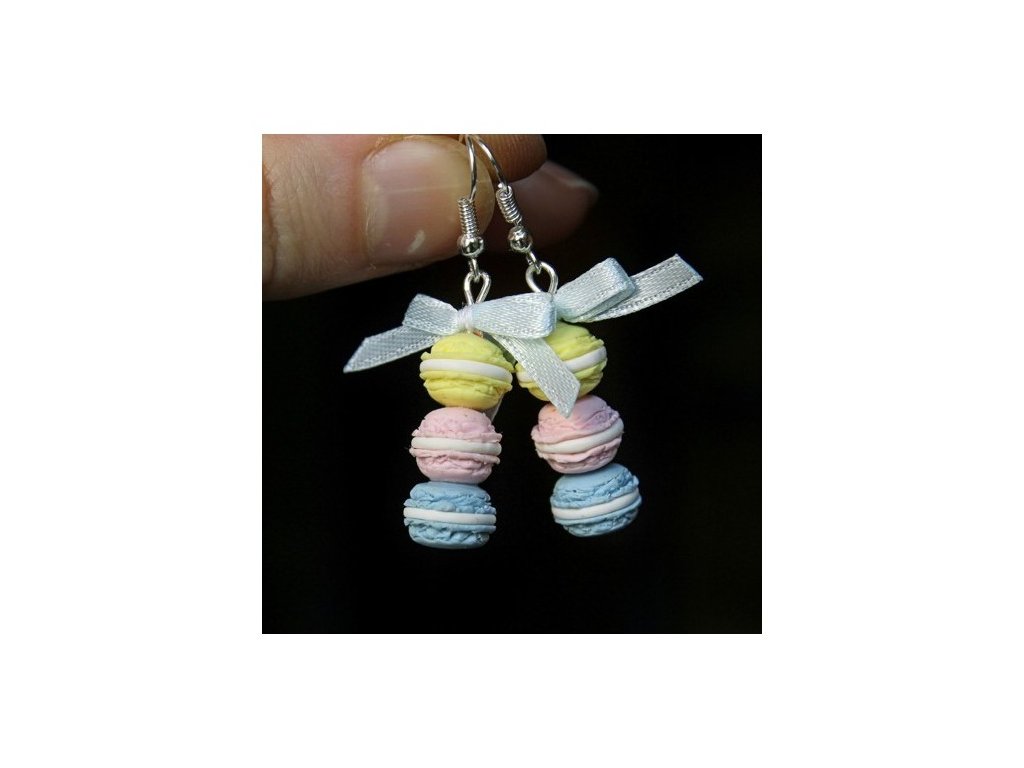 Sladké náušnice Fimo - troj makronky