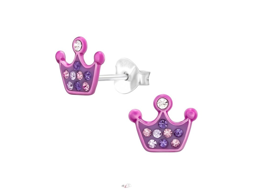 Stříbrné náušnice korunka fialová