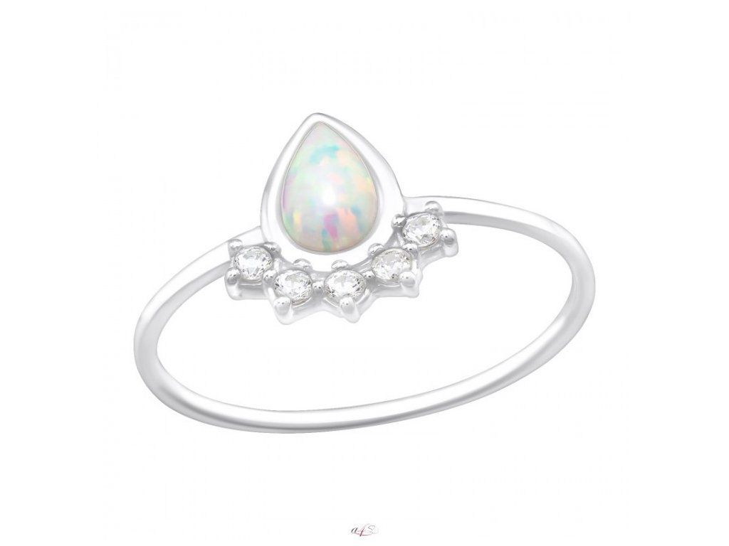 Stříbrný prsten s opálem ve tvaru slzy