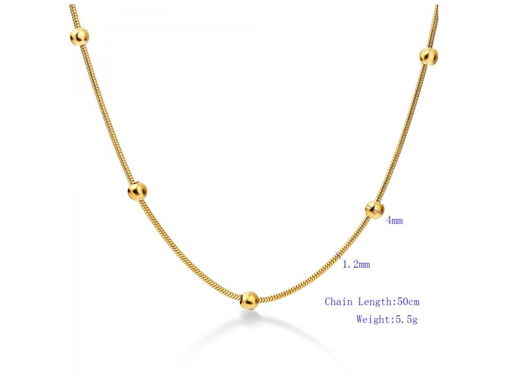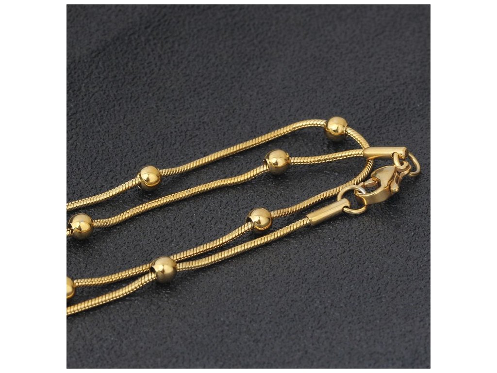 Zlatý řetízek ocelový s kuličkami