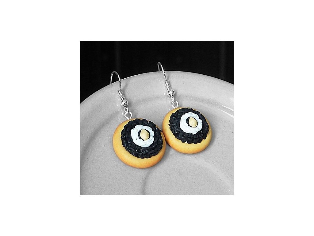 Slaďoučké náušnice z polymerové hmoty s borůvkovými lívanci se šlehačkou. Materiál: fimo. Průměr: 1,6cm.