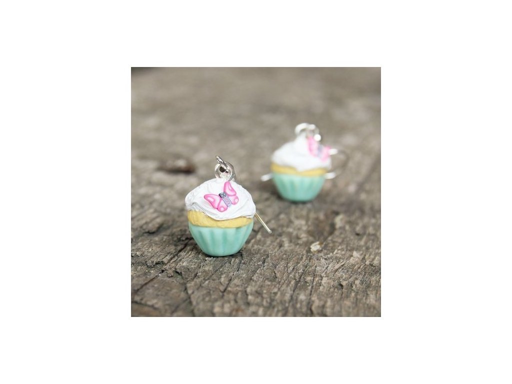 Sladké náušnice Fimo - cupcakes s motýlky