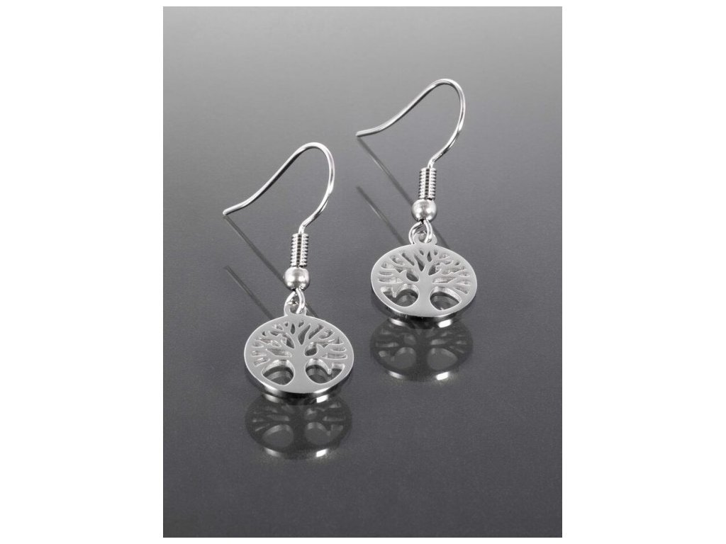 Visací náušnice z leštěné chirurgické oceli s kruhovým přívěskem s motivem stromu života ocelová